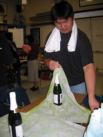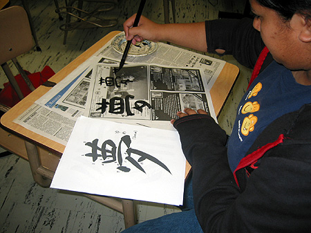 For the past four years, the Japanese teachers of the Bay Area have worked together to offer their students a chance to experience Japanese culture firsthand outside the classroom. To this end, they have created the Annual Bunkasai (Culture Festival). This one-day event brings several hundred children and adolescents together from around Northern California to participate in a number of different cultural workshops taught by the teachers themselves. Silver Creek has attended every festival so far, and for the past two years we have journeyed north to Mills High School (where Hall sensei did his student teaching) in order to partake of this fun, free learning opportunity.