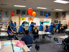 In March of 2010, nine intrepid SCTHJP students played host to students from Korakukan High School in Okayama, Japan. As always, D5 was rocking with good food, good music, and good performances. This year we marveled at the juggling skills displayed by SC's own Daniel Accosta--the Boxpert.